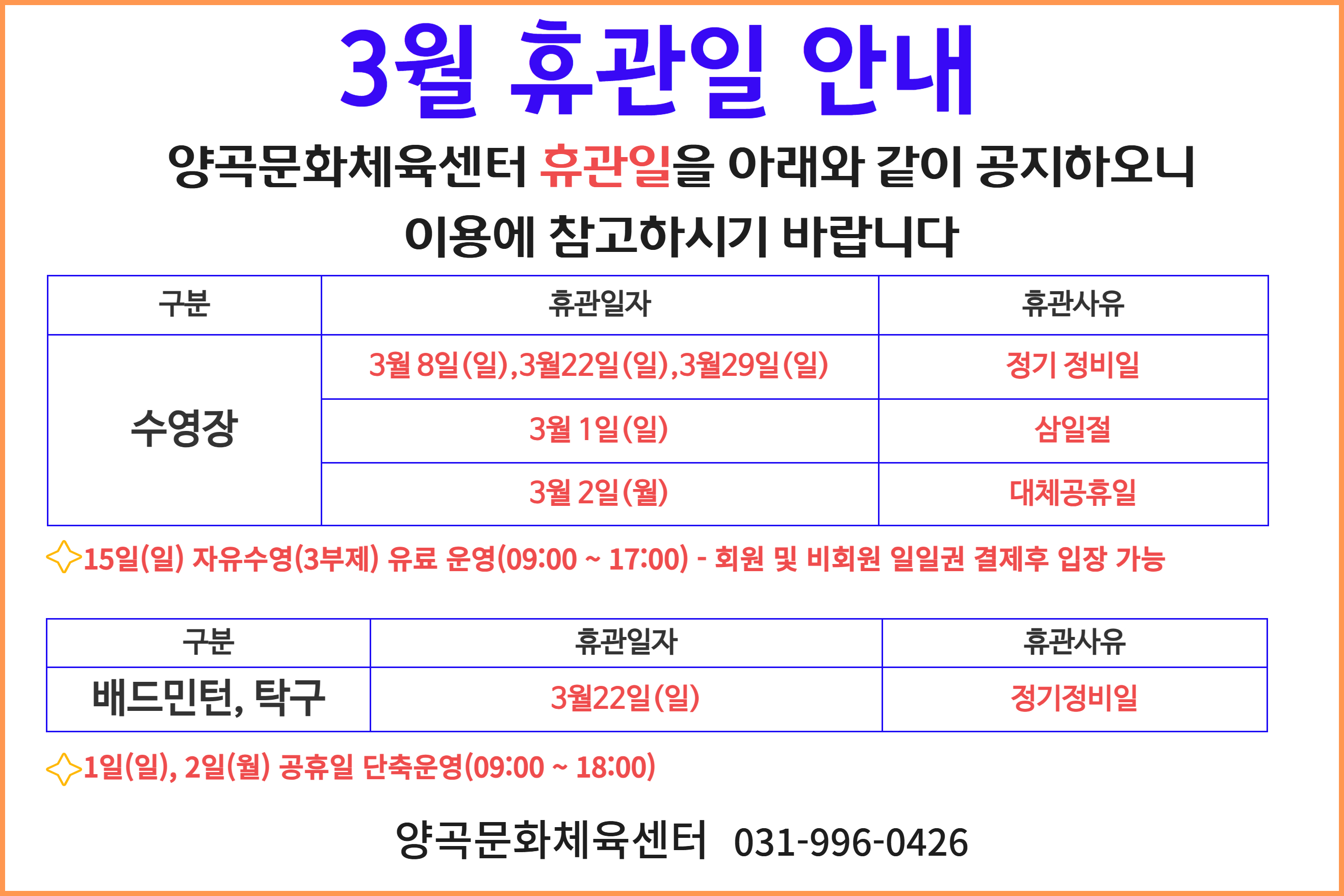 3월 휴관일 안내